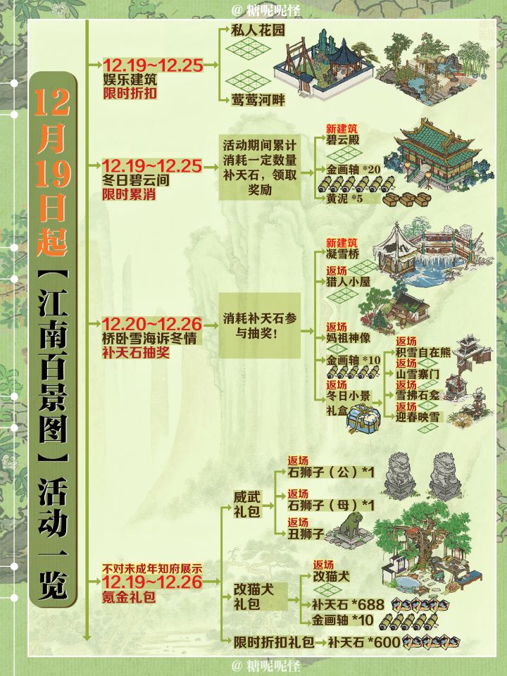 返场建筑:猎人小屋|武将碑|儒士碑|旧苔门|改猫犬|石狮子|丑狮子|迎春映雪|雪覆石龛|积雪自在熊|山雪寨门