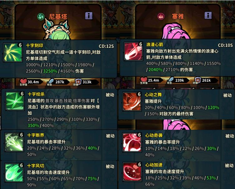 尼基塔刚出生就有异常增伤250%、增加20%暴击率、增加50%攻速。而赛雅需要到金3才能有22%的暴击率,到彩2才能有53%的暴击率,满星最多也只能有150%的最终增伤。尼基塔血量、攻击力、防御力同星也高于赛雅。也就是说,尼基塔刚出生几乎就堪比满星的赛雅了。在日常打BOOS上赛雅被完爆,苏梅拉甚至不用展示对比数据。(为了方便对比,我改变了赛雅的技能顺序)