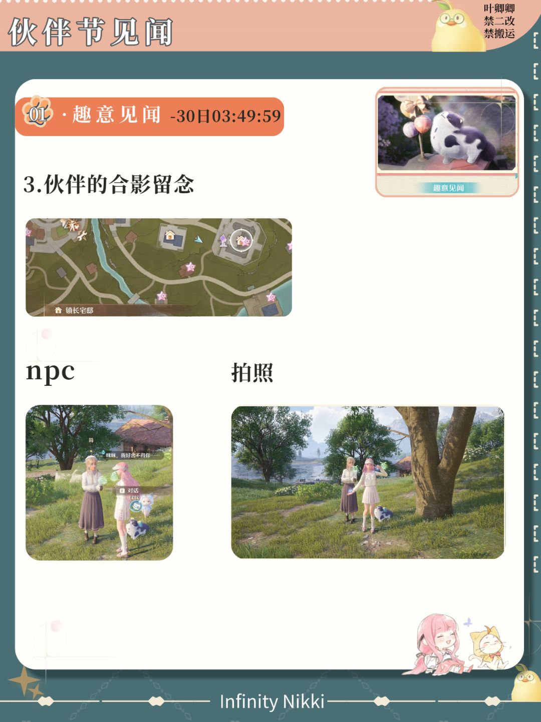 【完结伙伴节见闻】攻略汇总 完结 「趣意见闻」见闻任务 点亮灵感·友爱微光 照片调查·汪汪三兄弟 伙伴的合影留念 #无限暖暖全球公测