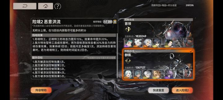 我险境二赛季入坑,错过了龙井池,梧桐版本才补强二队,就环境现状同大佬们分享角色及阵容强度,并且交流一下险境凹分技巧!望各位大佬多多指点,也欢迎萌新提问![[表情_流口水]](https://img.tapimg.com/market/images/f0320a0494447e27b7123a94b6cbcecf.png)