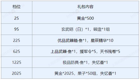 【活动详情】新增多款新手礼包,永久限购1次。