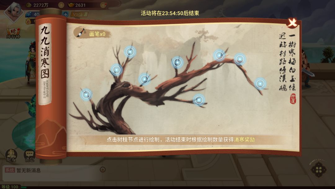 4、活动结束时,每绘制一朵梅花还可以领取元宝*30的消寒奖励。