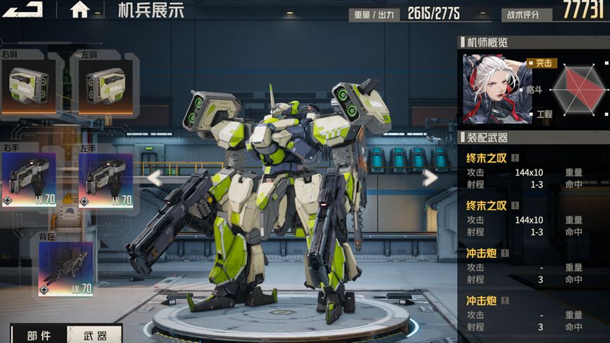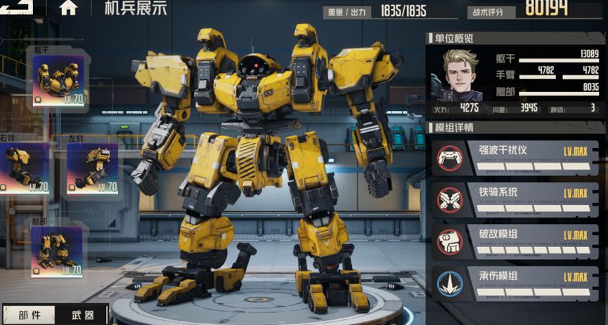 除了技能之外,我们也可以通过点进机兵详细查看机师的武器和模组,来确定是否选择该机师