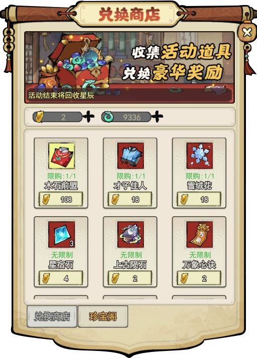 活动期间,在星夜秘境中获得的“星辰”,可至兑换商店处兑换珍稀道具;在星夜秘境中获得的仙珀可至“珍宝阁”处兑换心仪宝贝~