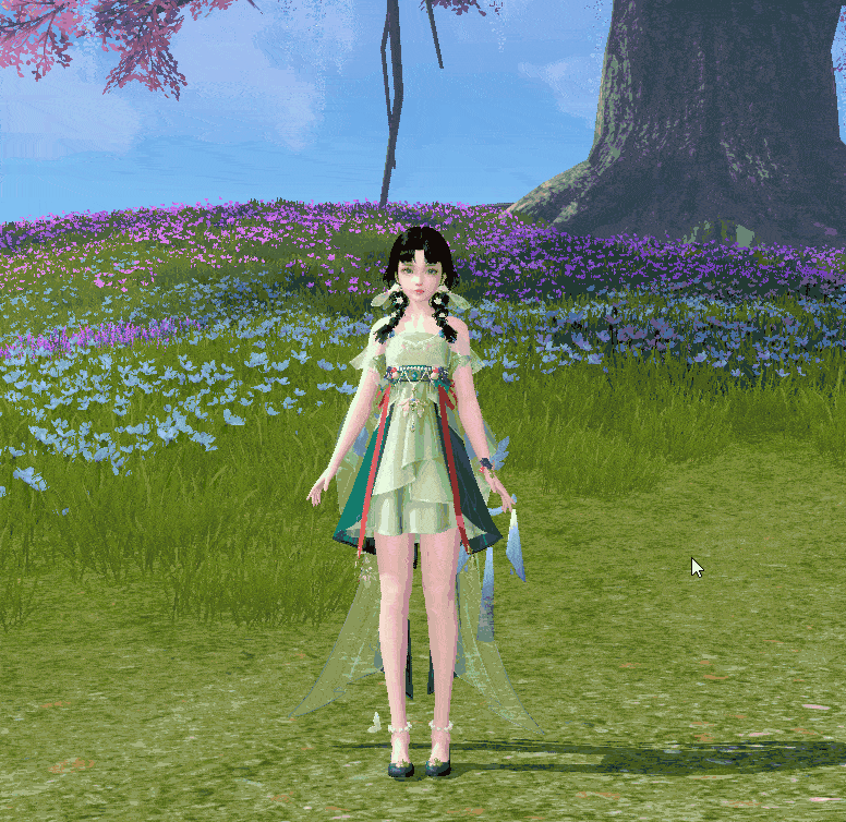 一身翠绿相间的配色,搭配像蜻蜓翅膀一样的可爱发饰,绿意盎然的元素之中带着点俏皮可爱,浑身上下都充满生机与活力,让人一见到,仿佛能驱散世间所有的阴霾。