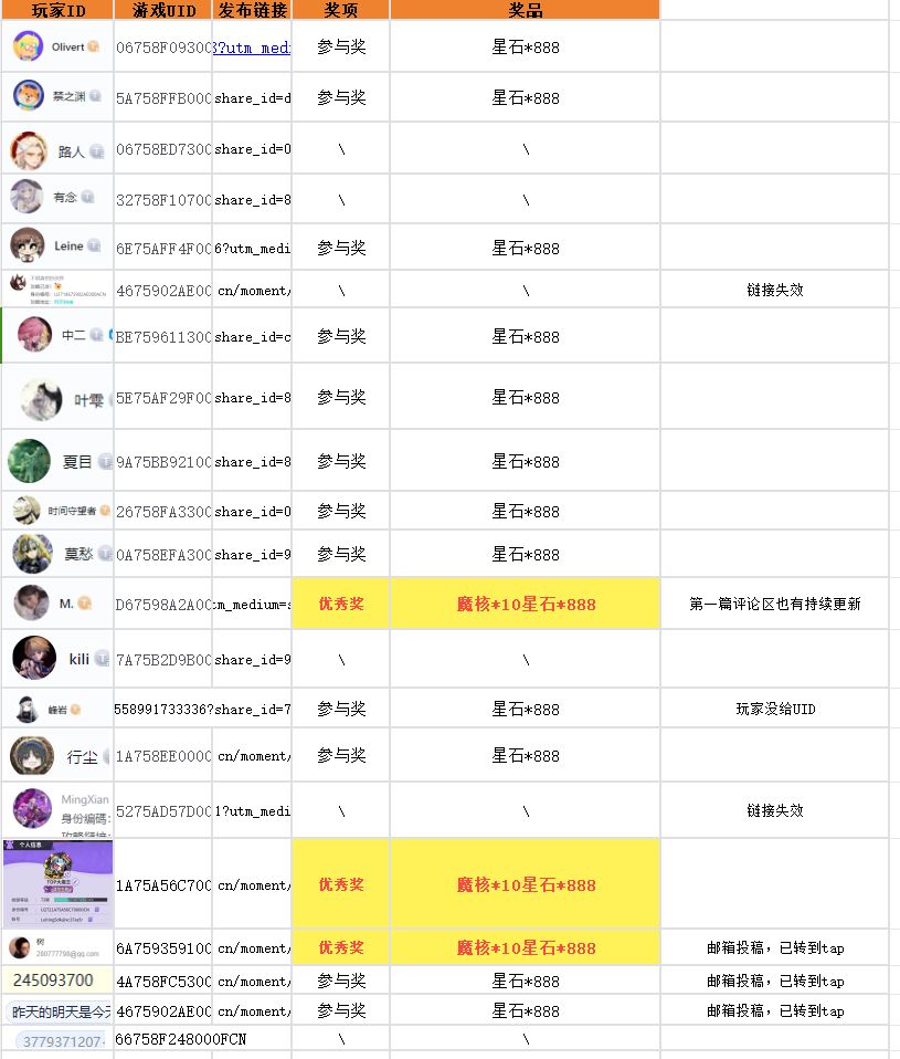 小七会尽快安排游戏内邮件发奖~请魔王们注意游戏内邮件!