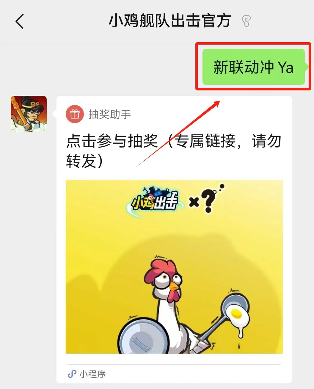 第二步:将暗号:新联动冲Ya 发送至公众号后台获取抽奖链接,点击进入抽奖页面即可参与抽奖