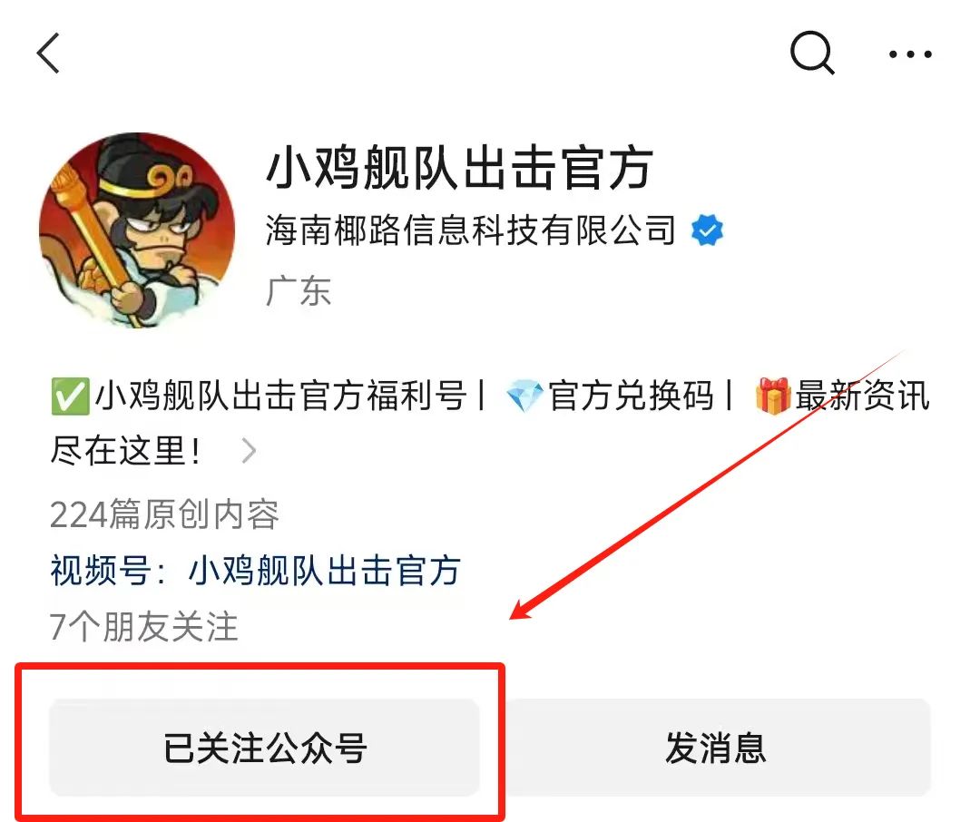 第一步:关注【小鸡舰队出击官方】微信公众号