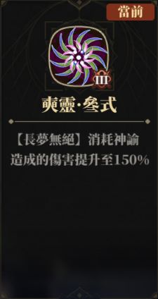 ①直伤玩法:利用技能消耗‘神谕’造成多段直接伤害,灵器选择帝休+浮华+洛泽+雷神;副词条优先—暴击=爆伤>攻击=破击率>其余属性,奇术选择奭灵·叁式。