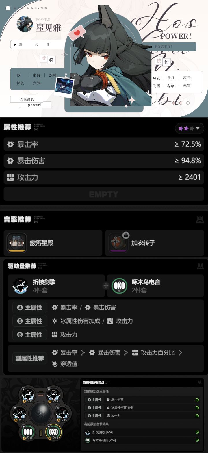 • 霜染寒星:暴击伤害提升50%至80%,具体数值取决于音擎的等级。