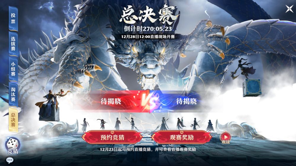 竞猜开启时间:12月19日 选拔赛结束后
