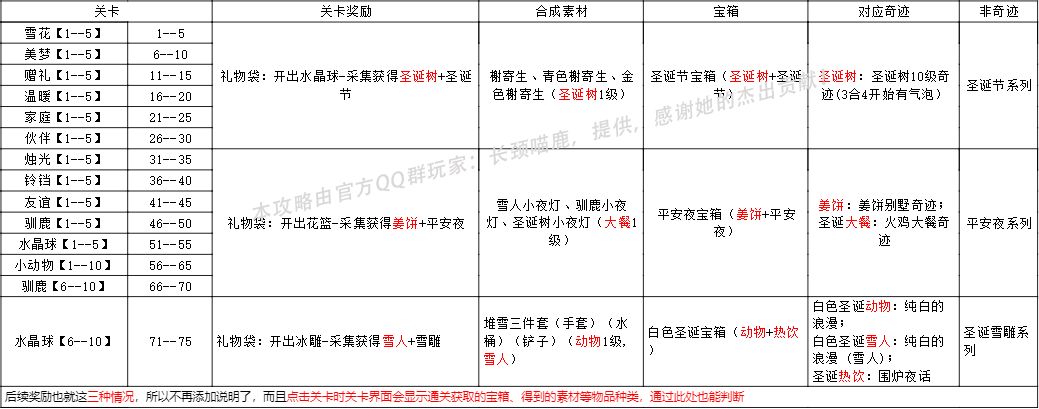 想要合成圣诞奇迹的小伙伴,可以参考一下奇迹合成素材及对应的关卡攻略(含本次平安夜活动奇迹)