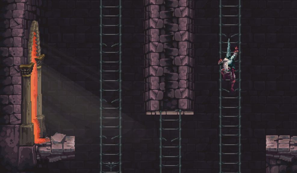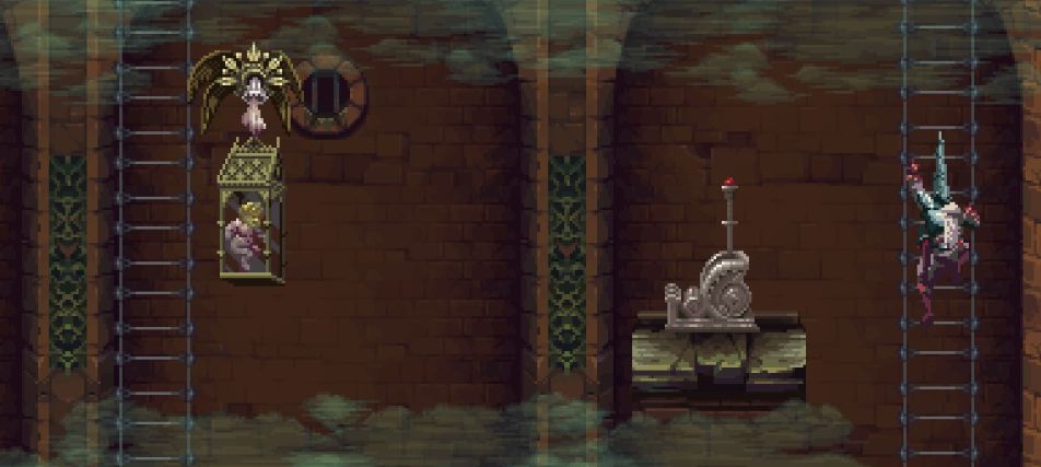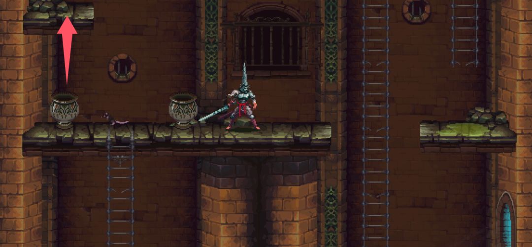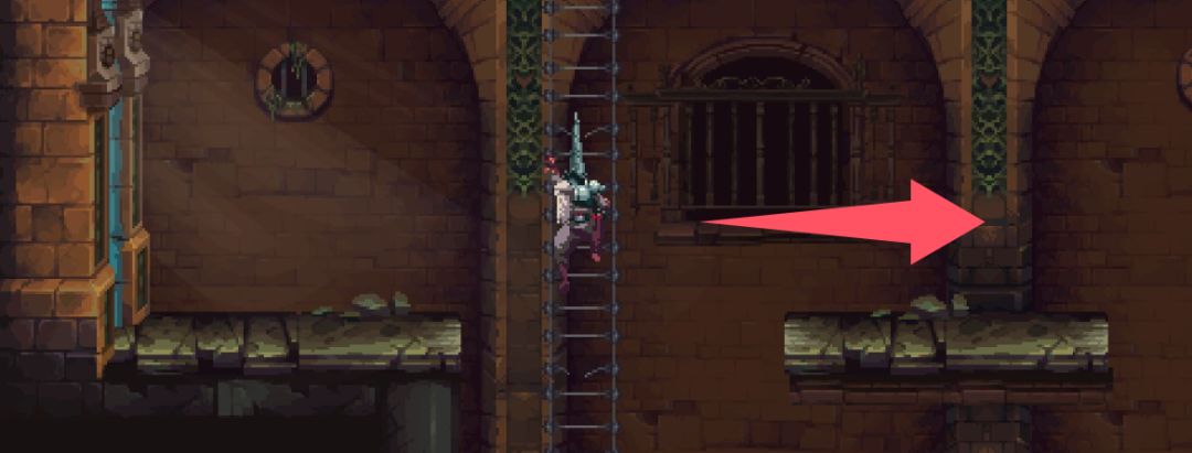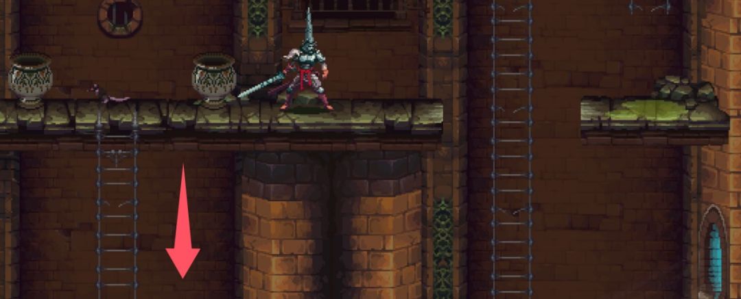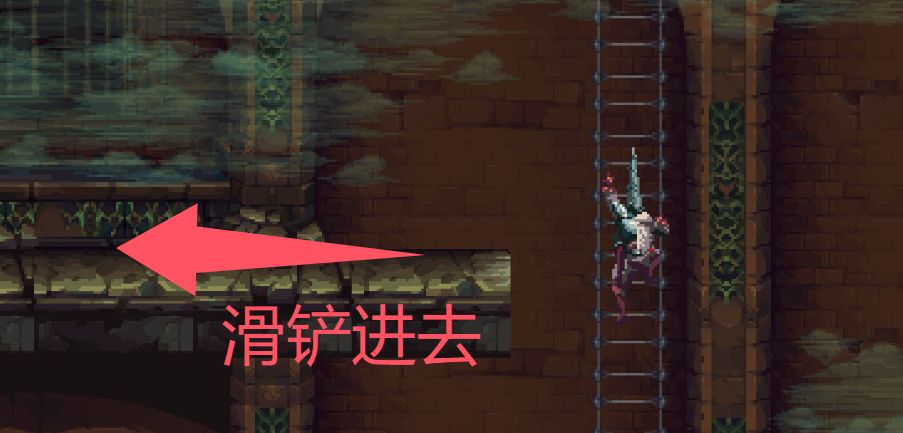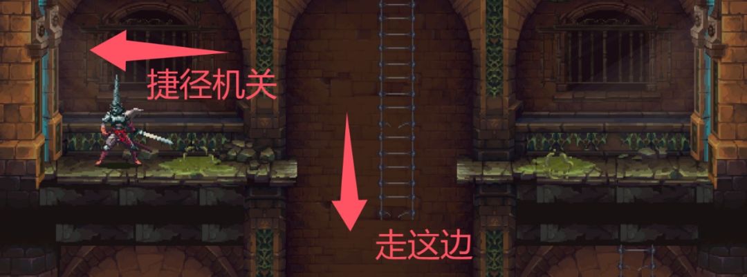 跳下来后先走一个右侧的梯子向下,然后再走一个左侧的梯子向下,在左侧这个梯子的最末端,攻击梯子左边的墙壁打开隐藏房间。