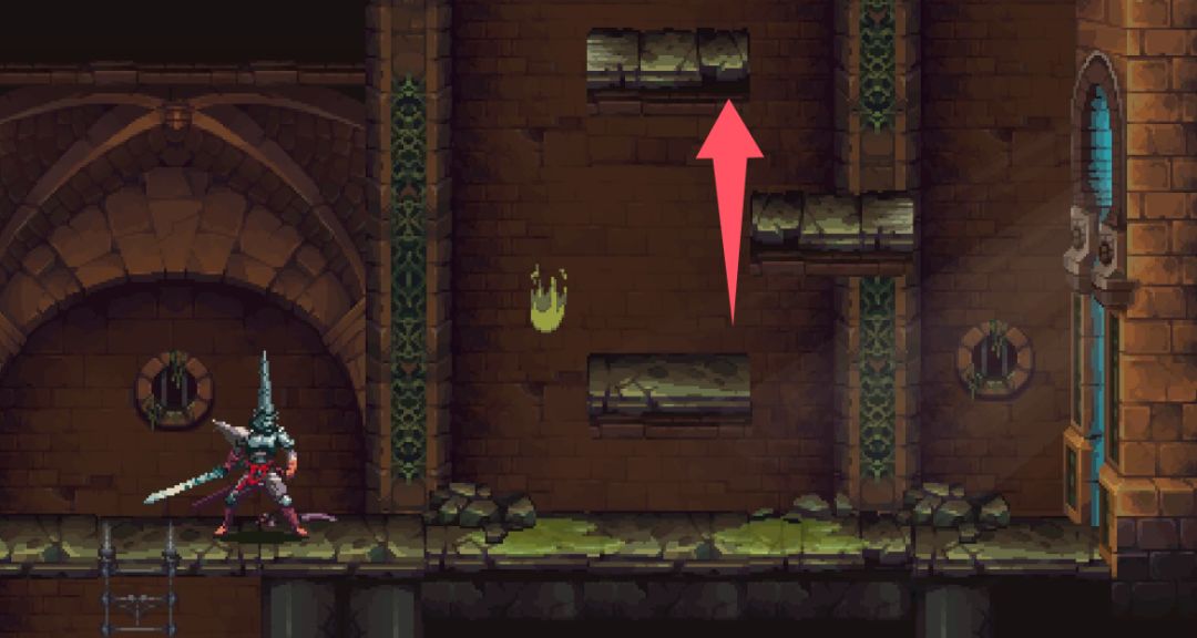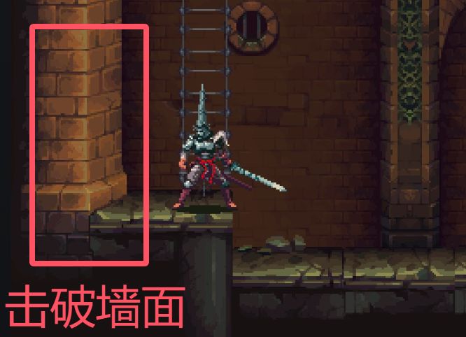 ①离开存档点直接进入对面的门。过两个机关地刺,会来到一堵有蜡烛的墙前面。普攻这堵墙可以将其击破。