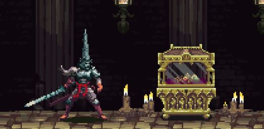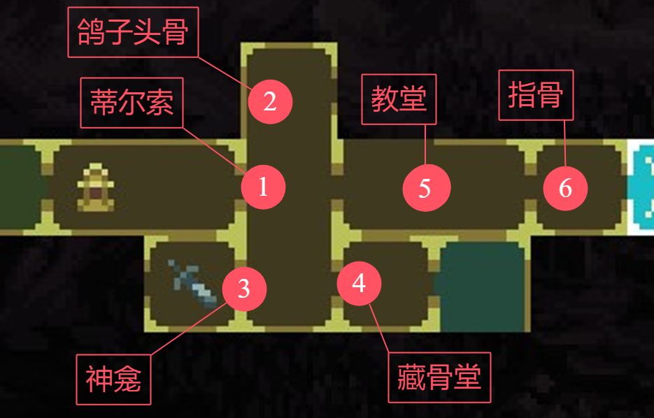 ⑦离开商店去对面的门。一直走到尽头然后向下,会看到一面有烛台的墙,照例过去攻击下墙面打开隐藏房间。