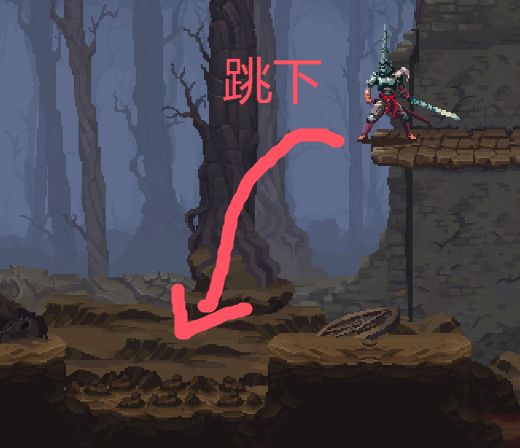 ⑦从默哀兄弟会出来往右走,有个高处没有台阶的泥坑。在这里使用前面买的技能罪恶降临(摇杆向下拉同时按住攻击键),可以把泥坑砸开。
