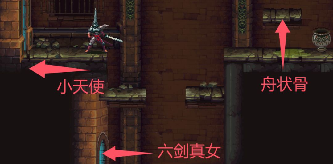 ④头状骨右边就是小天使,跳到小天使右侧的高台上跳斩(建议先把两个烦人投石怪清了)。