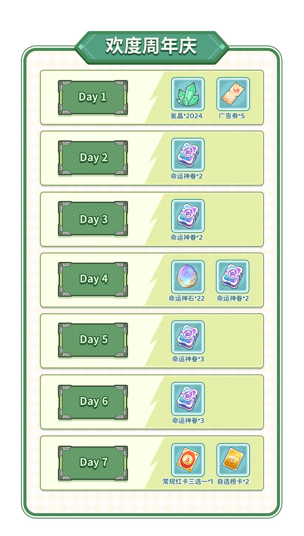 3.活动奖励:红卡三选一、命运神眷、命运神石等