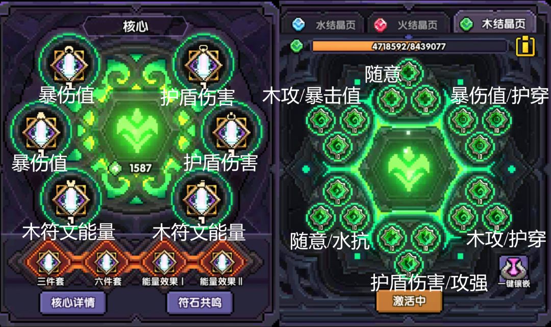 上图右侧结晶页,最下方攻强和护盾伤害选择均可,实战体验差距不大。