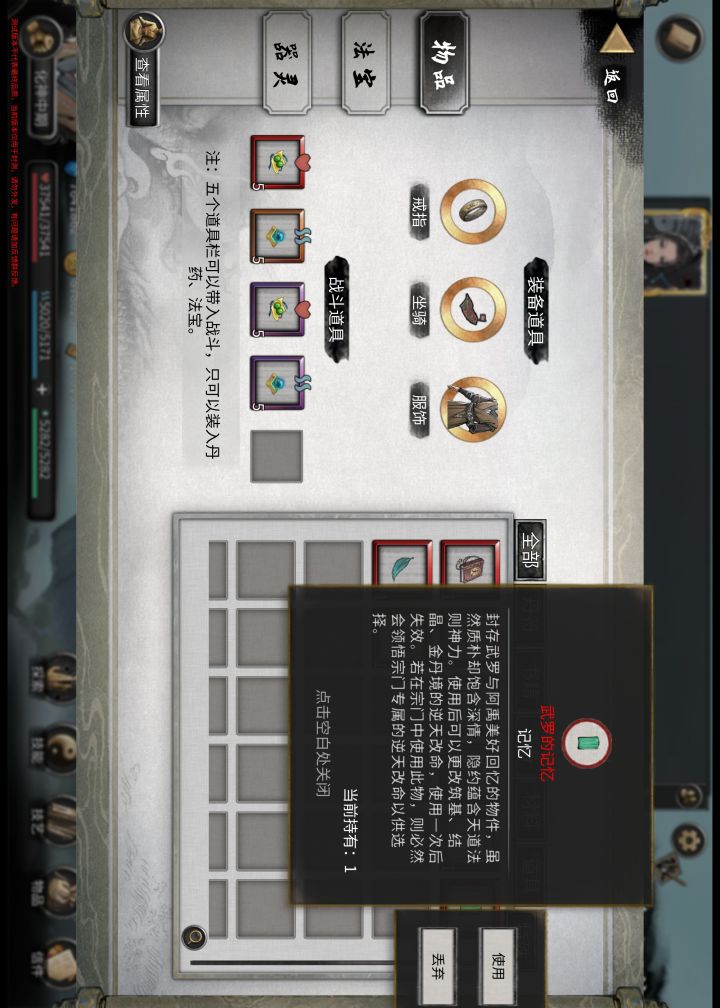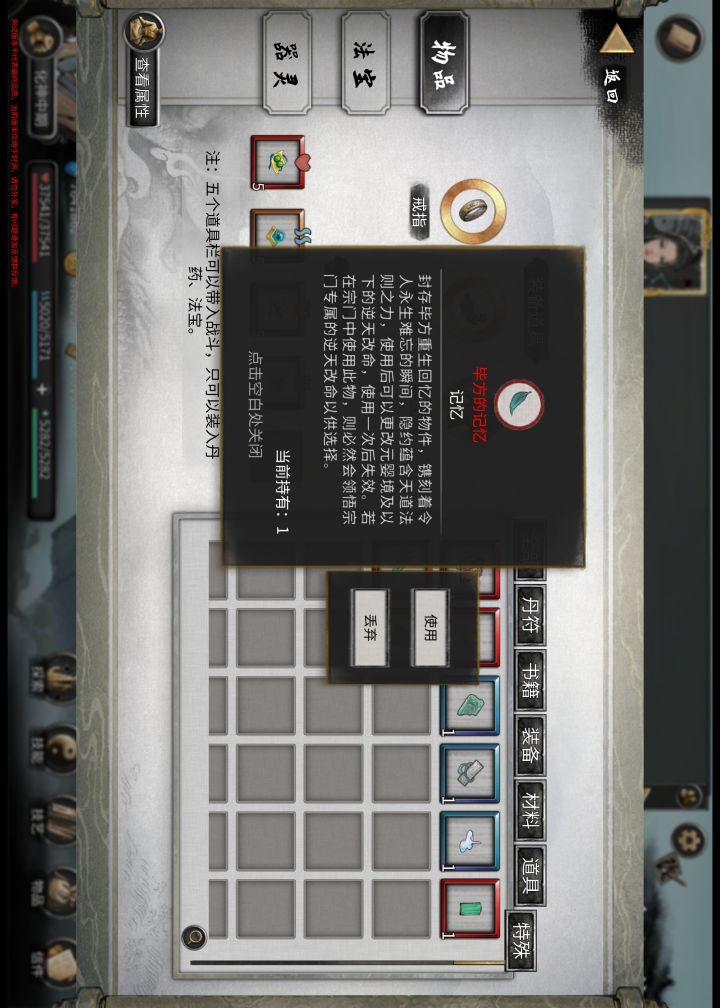 首先不论是打大boss如洪荒难度的炼狱当康还是孤云长乘,可以提前存档,当发现几乎打不动对方而且自己快要死亡时及时点~逃跑~返回主界面,然后再读档,否则会浪费一次生命造成神器破碎,当然也可能你结交的义母义父道侣会为你挡刀但是不可能每次都有这种机会的