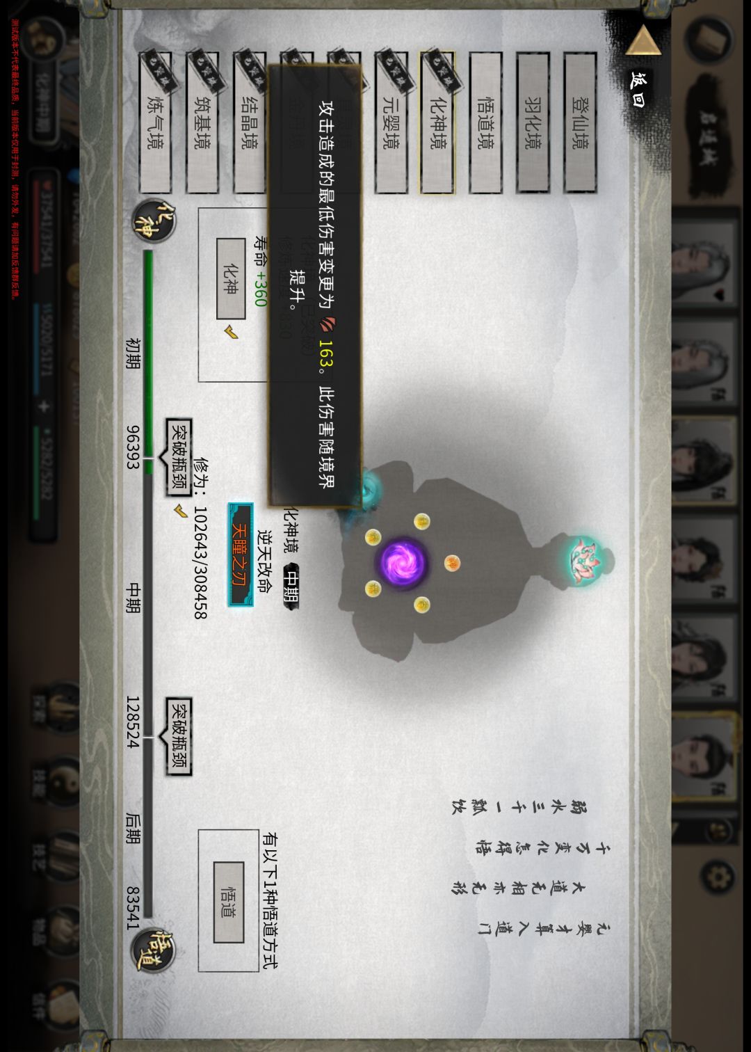 2由于洪荒难度boss的血量从金丹以后就开始向百万千万方向狂飙,玩家低境界攻击都不是很高,要想击败敌人除了刮痧保命无其他方法,刮痧也有刮痧的技巧,我的推荐是逆天改命和自身流派搭配运行形成一个体系循环。强烈推荐水剑流派,搭配的逆天改命:1水力四射:攻击敌人概率向敌人发射水柱攻击持续很长时间。2天瞳之刃:最低攻击变成49随境界提升而提升不会因为境界差距而打出1的伤害值,使得刮痧伤害提升。3灵法入门,灵法晋级和灵法精通:减少绝技冷却时间,搭配绝技减身法cd可以形成循环,4武神残缺:开局血量90%形成血盾,抵挡伤害,注意在自身血量下方黄色的部分很淡但是的确存在可以搭配使用身法期间回复血量的经和神功。