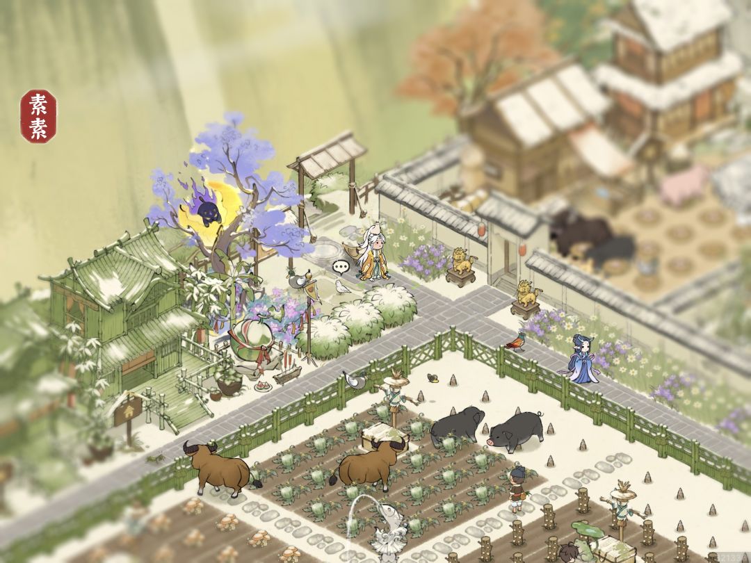 早期西瓜装饰❗靠近后山处放了三个灌木,这里也有几率结红朱果,和中间的灌木区域不重叠。