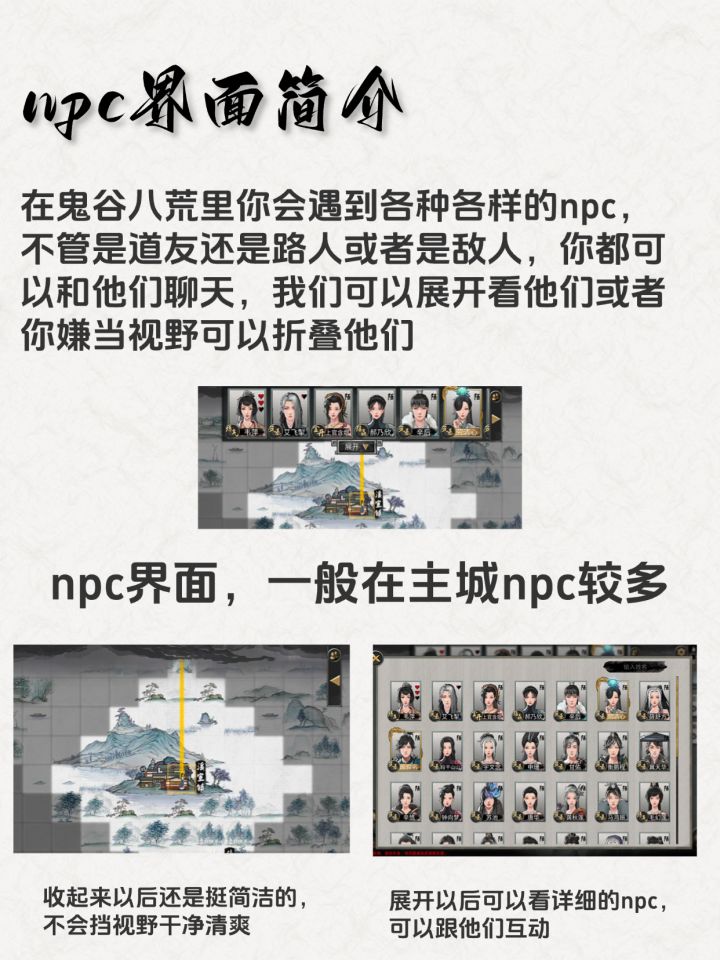 在鬼谷八荒里你会遇到各种各样的npc, 不管是道友还是路人或者是敌人,你都可以和他们聊天,我们可以展开看他们或者你嫌当视野可以折叠他们