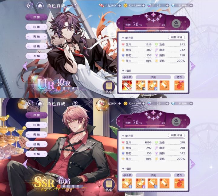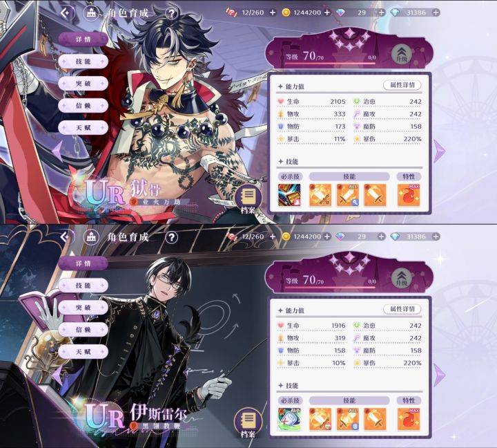 🌙 UR 獠夜✨:单体必杀技,群体小技能,增加黑暗状态,群体减速,输出效果不错。