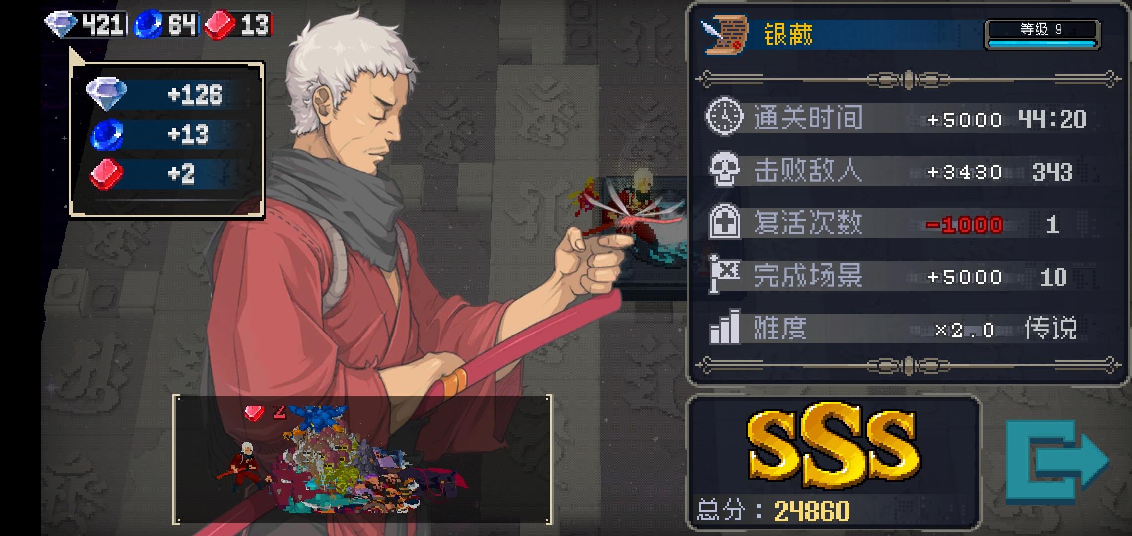 做完新手任务之后就开始打第一次,感觉银藏很帅就买了玩起来,然后陌刀配那个一闪好强啊,又强又帅又快乐!(反氪金武装是真的nice,合出来之后就冷怂堆金币,直接堆到伤害上35了)😁