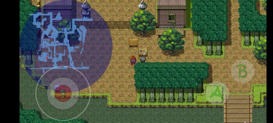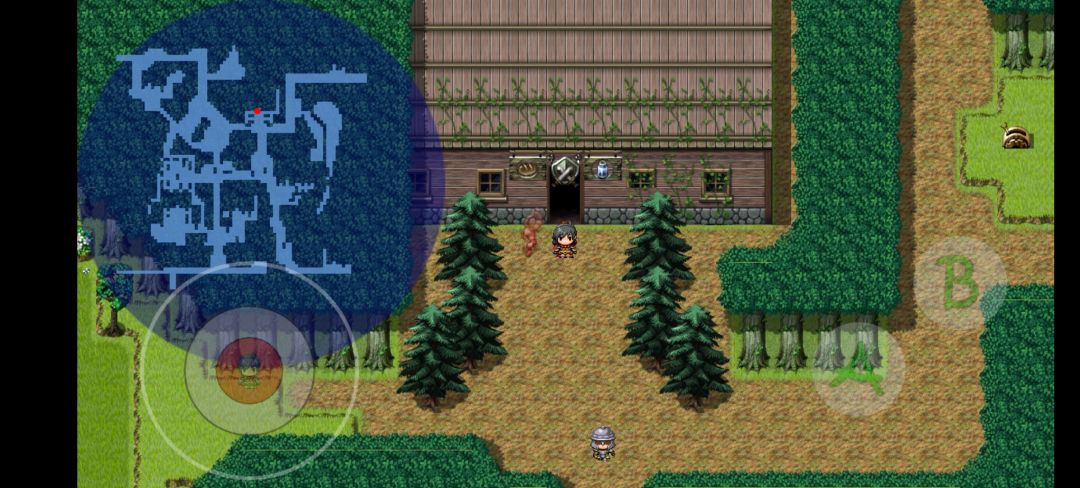 出门后拿起树橔上的斧头去右下绕右上的🌲中砍木头。木头可以修上方的桥和充当某些用途的货币。
