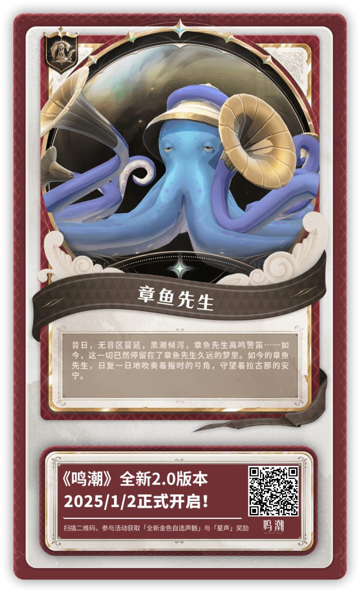【鸣潮2.0版本】我把在《鸣潮》黎那汐塔声骸大收集活动中获得的【章鱼先生】集换卡分享给你,点击领取吧!参与活动获取全新五星自选声骸和星声!