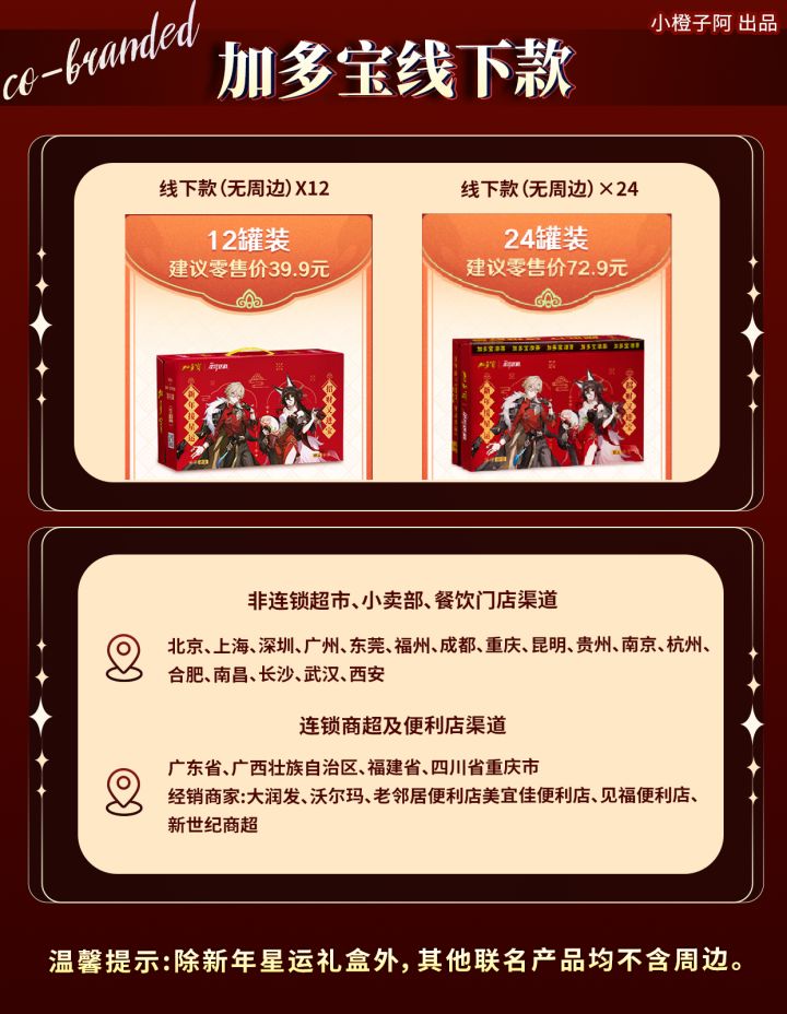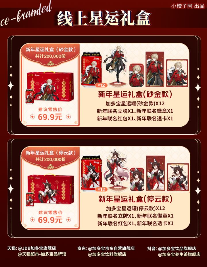 《崩坏:星穹铁道》 × 加多宝新春联动即将开启!分线上新年星运礼盒款和加多宝线下款。