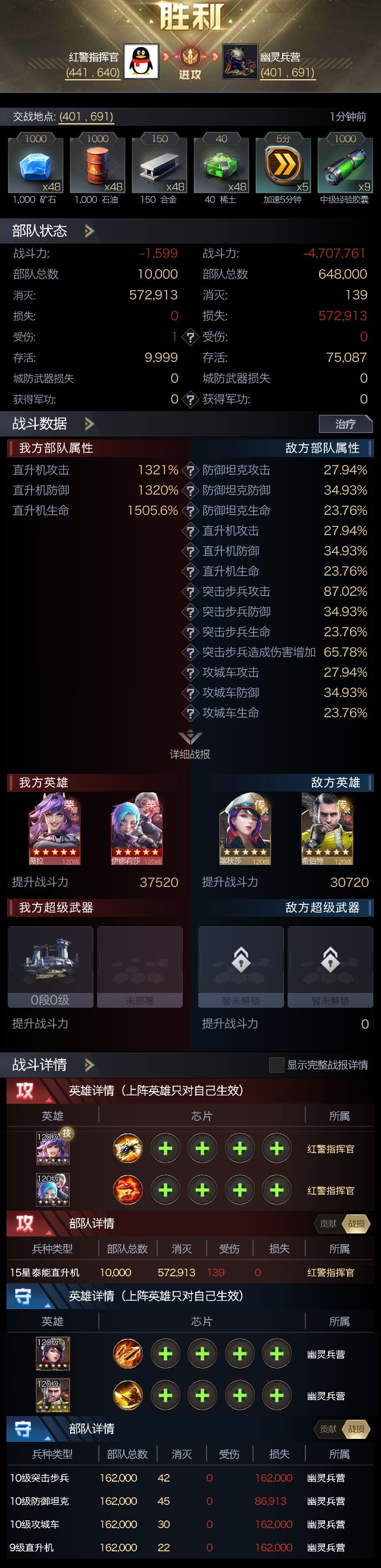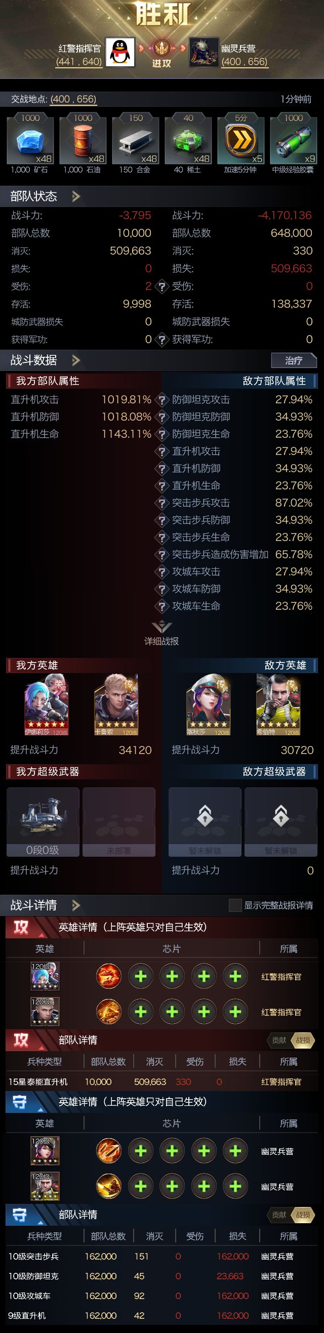 荣耀薇拉与荣耀伊娜丽莎两位荣耀英雄的强强联合,可以为自身空军部队提供多种buff加成,为战斗胜利提供强力的保障。下面我们看一组战报对比(战报仅供参考):