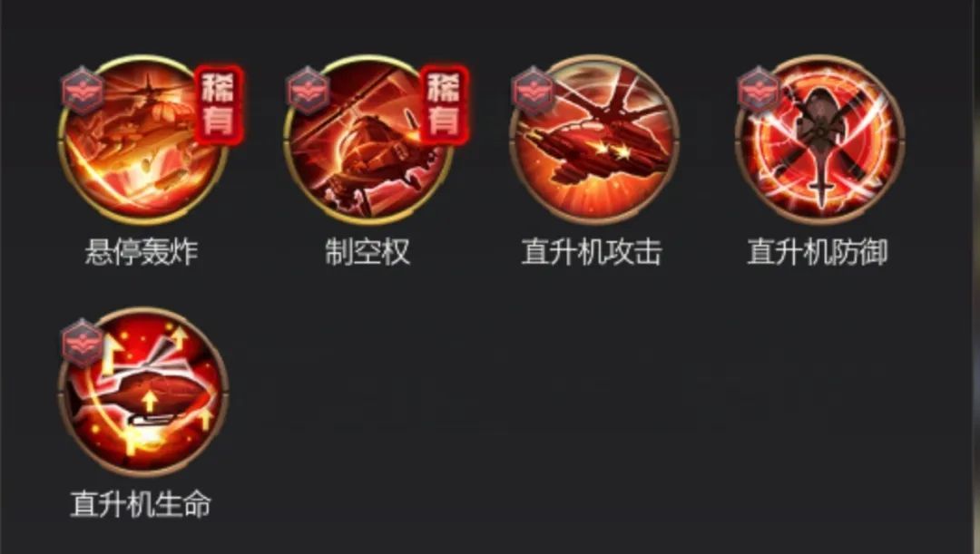 空中缠斗:每第5回合开始时,若敌方存在空军单位,则选中其中1个空军单位与自身进入缠斗状态;(持续3回合)缠斗状态下,受到己方直升机干扰,敌方该空军单位在造成伤害时,有【20.00%+5.40%*敌方空军单位数】的伤害将强制分摊至该直升机上;(敌方空军单位计数时至多取10个)缠斗状态下,己方直升机以耗损60.00%的伤害效率的代价,在受到敌方空军伤害时,额外减少+27.00%;