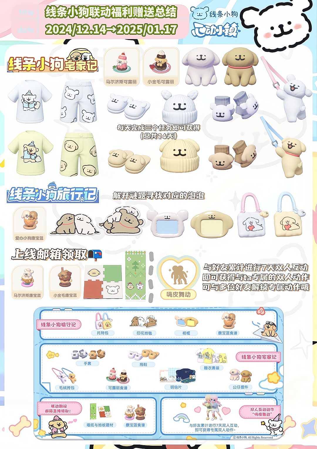 图五是心动小镇与线条小狗联动福利的总结🎁