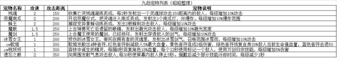 九劫宠物图鉴攻略【宠】