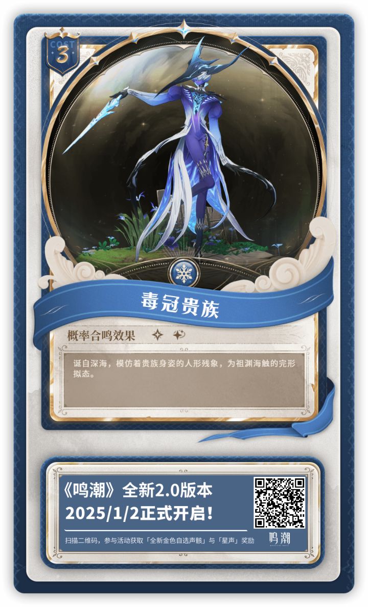 【鸣潮2.0版本】我把在《鸣潮》黎那汐塔声骸大收集活动中获得的【毒冠贵族】集换卡分享给你,点击领取吧!参与活动获取全新五星自选声骸和星声!