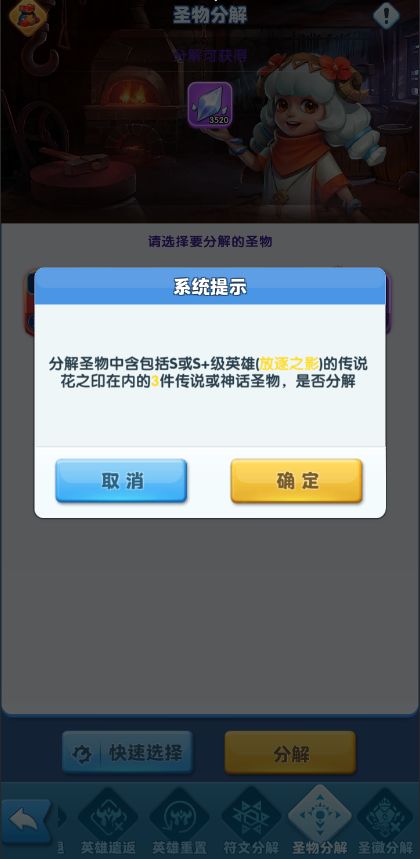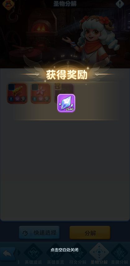 2、每件传说级圣物分解获得880个棱镜碎片,每件神话级圣物分解获得1760个棱镜碎片,s级英雄和s+级英雄的圣物分解所获得的棱镜碎片数量一样。