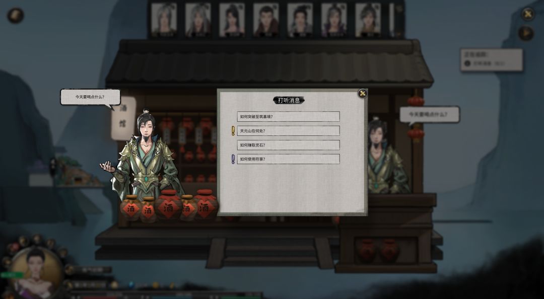 抵达城中后,向酒馆老板打听天元山信息。未得到有用信息直接先离开当前场景!