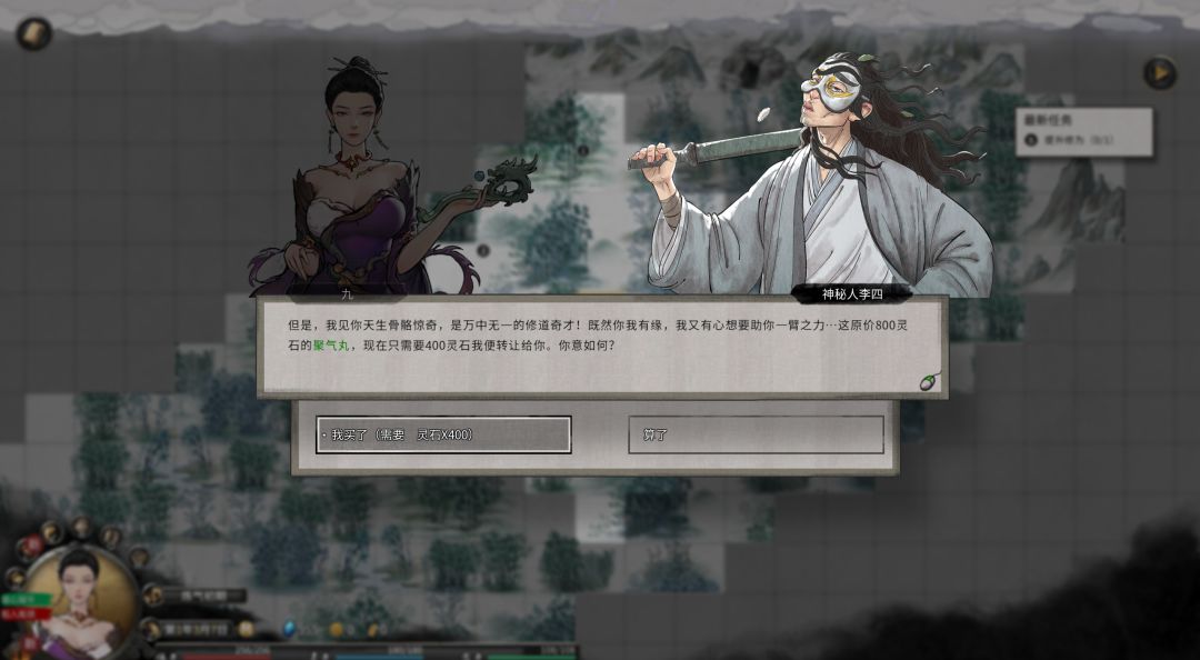返回城中时会遇到神秘人李四,他向你出售丹药无需购买!(奸商一位)