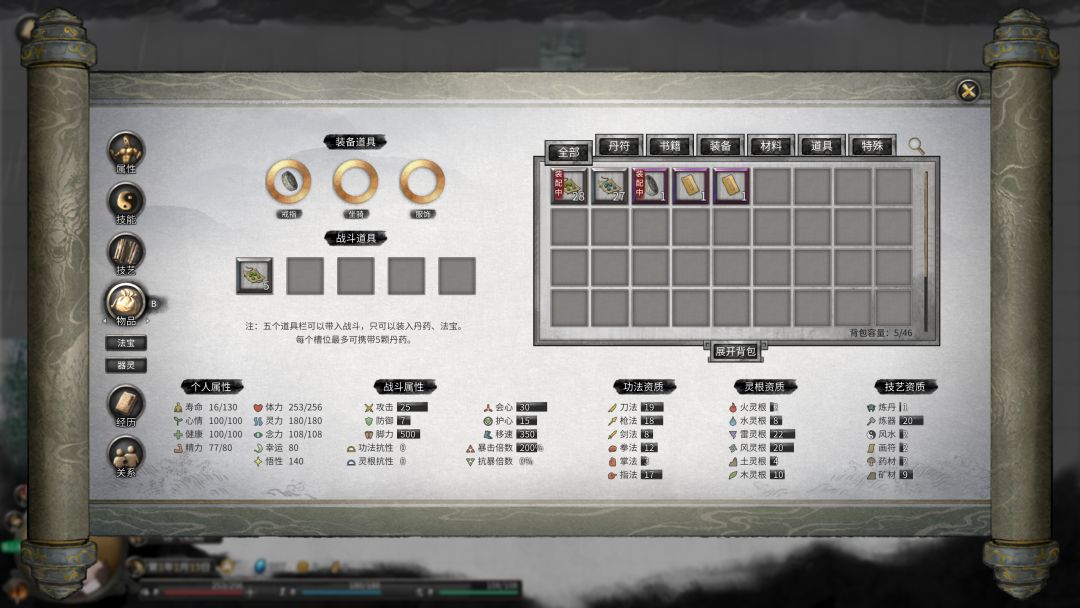丹药装备在战斗道具栏,战斗时点击快捷键即可一键治疗等~