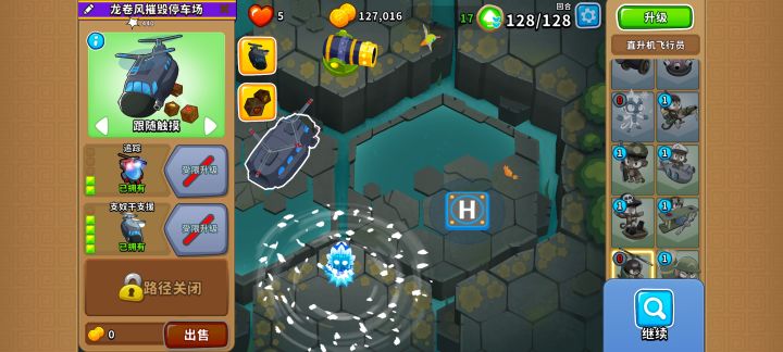 025大炮,052冰猴,240直升机,利用大炮的被动,冰冻气球和用直升机吹,只扣一个陶瓷的血,连续两次即可过关。