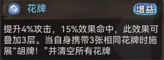 效果:1.提升4%攻击,15%效果命中,可叠加三层