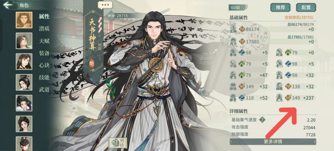 综上所述因为定力提供的护盾量不太够看。这个边际效用的最佳定力值总定力是201(149+额外52即可)。感谢楼下大神计算结果。