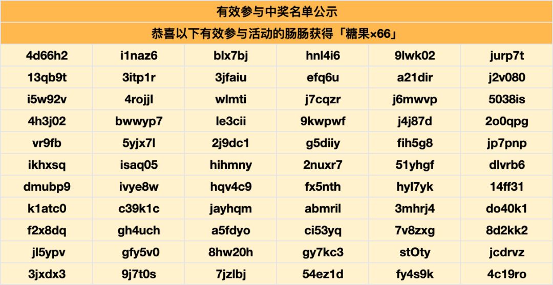 开奖啦!恭喜肠肠获得奖励~糖果奖励将会在14个工作日内发放到邮箱,请注意查收!