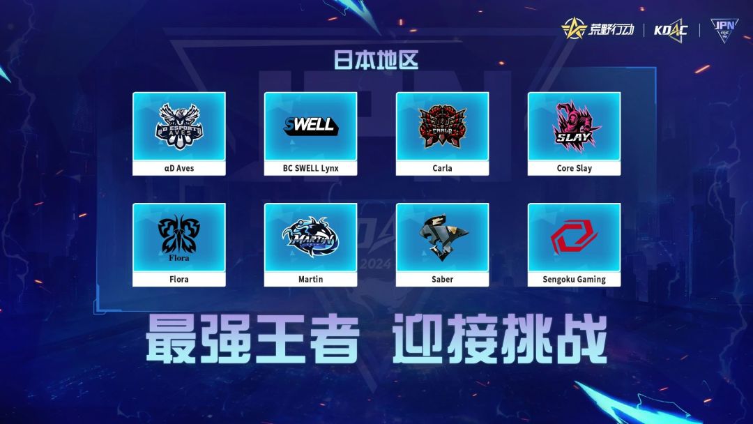 αD Aves战队、BC SWELL Lynx战队、Carla战队、Flora战队、Martin战队、Sengoku Gaming战队、Core Slay战队、Saber战队!