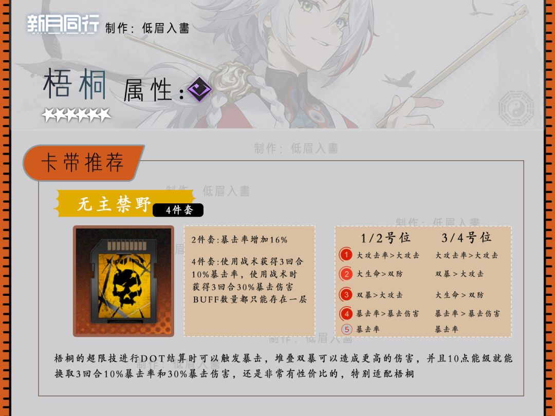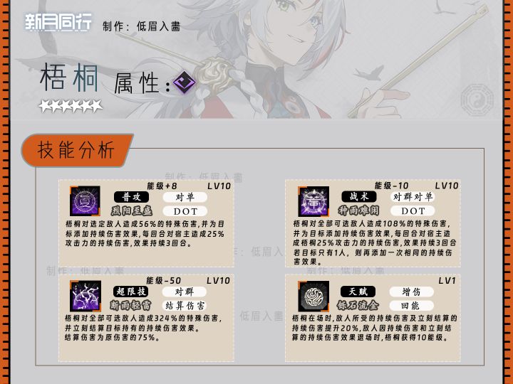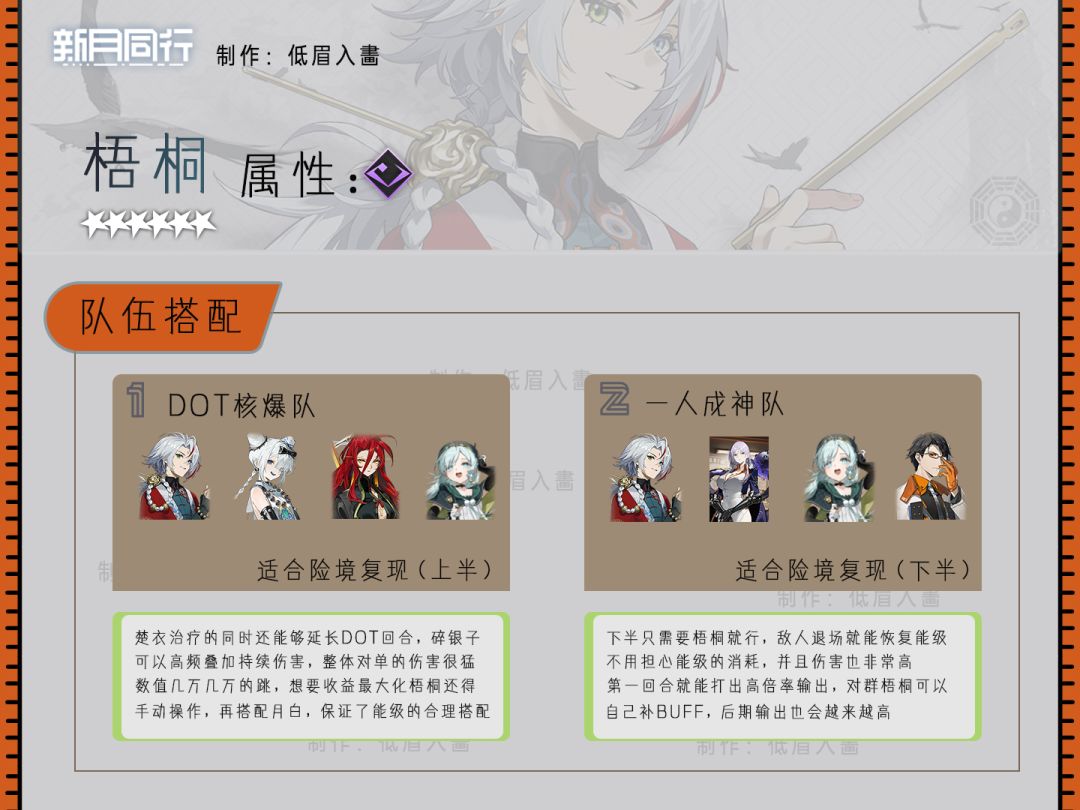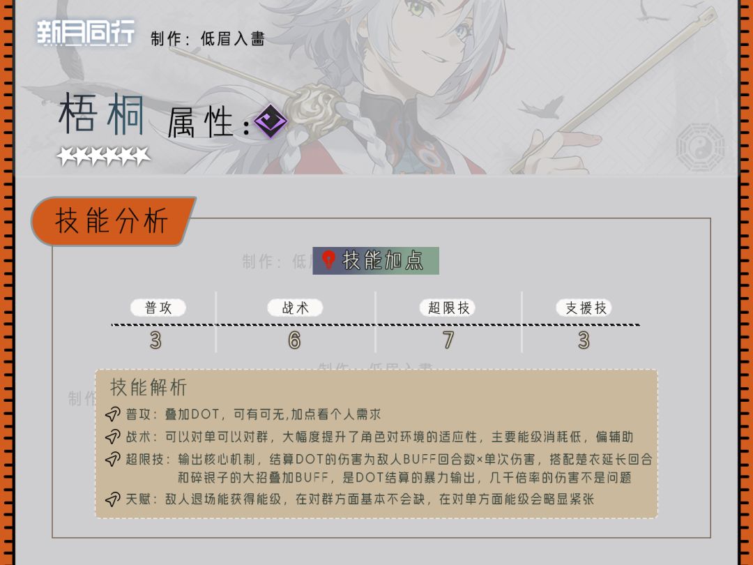 梧桐是持续伤害的专属主C,适合搭配碎银子