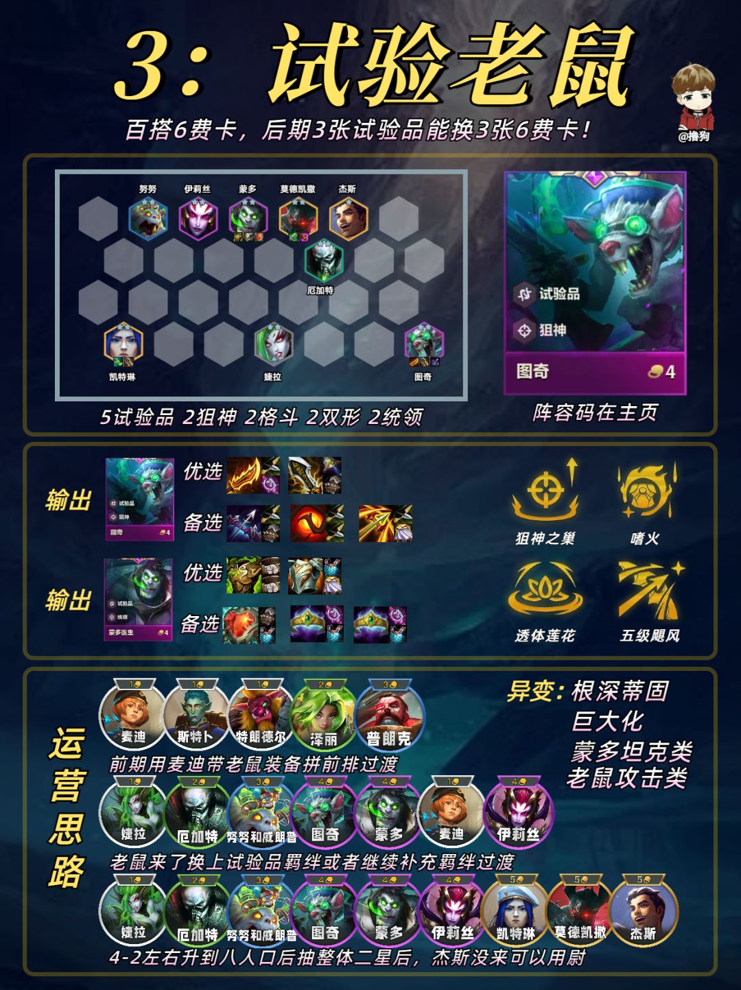 公众号爱下棋的撸狗有全部阵容攻略及代码,每日更新阵容榜单,下棋攻略