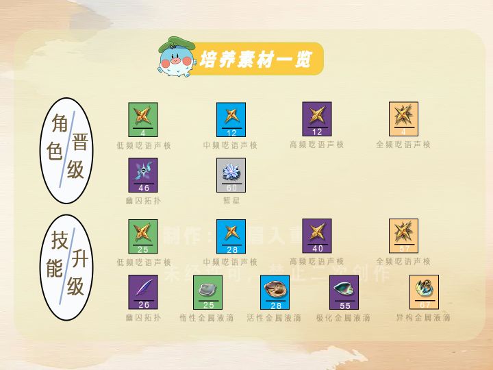 本次攻略将会按照培养素材一览、技能优先级、武器推荐、声骸选择、共鸣链分析、队伍建议多个方面,为大家整理了「椿」的简要攻略,帮助大家快速了解椿的培养方向