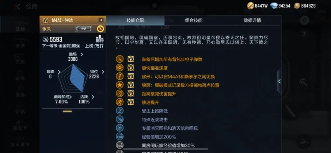 除了前文结合地形提到的武器以外,针对这种快节奏地图,保卫者固守包点的话携带短距离武器即可,如果顶防的话难免会有类似圆盘长廊这种远距离开阔点位,因此AWM-秒才这种远近皆有强势表现的武器是不二的选择,其次M4A1-星象和M4A1-仲达这两把武器的显示投掷武器的技能可以提前掌握敌方进攻动向,对敌人的进攻意图进行初步判断,然后对防守站位进行灵活调整。